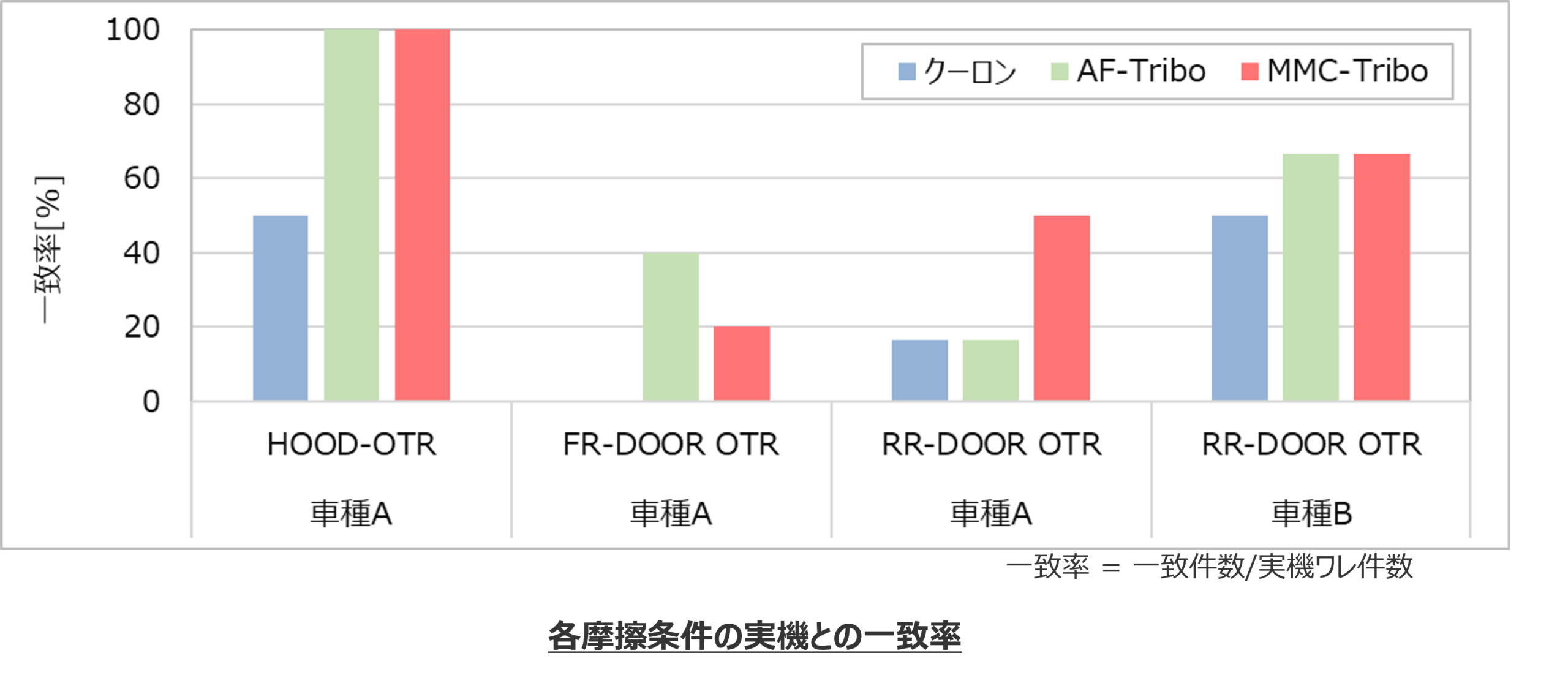 結果として、MMC-Triboを適用することにより一致率が向上するものと向上しないものがあることが分かった。この結果を基に一致/不一致の要因をさらに調査していくことにした。
